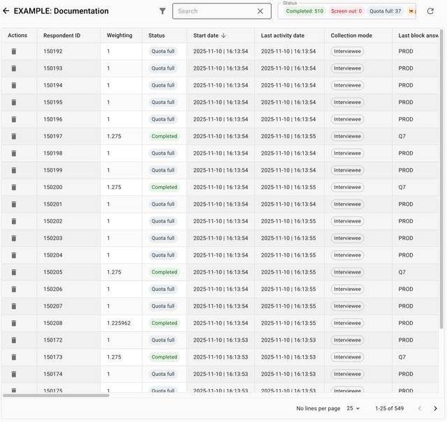 This powerful tool enables you to monitor ongoing surveys, review completed responses, and make necessary adjustments to participant data while maintaining full visibility into the survey process.