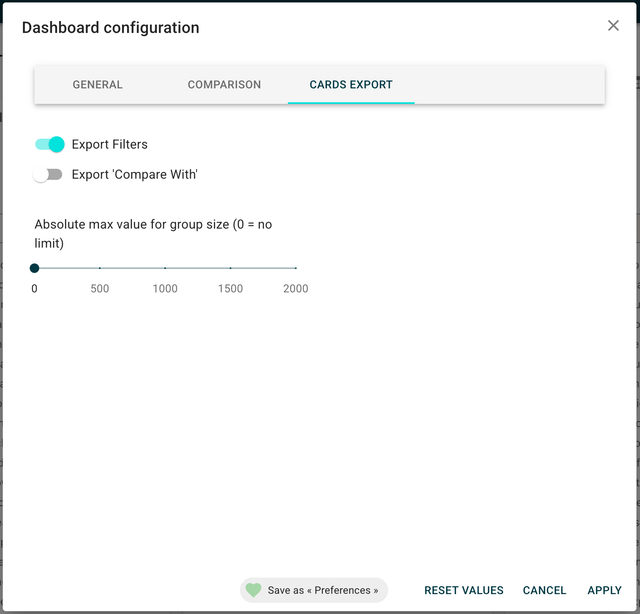 - Lors de l'exportation des cartes sous forme d'images, vous pouvez choisir quels éléments de configuration (filtres, critères de comparaison) inclure.