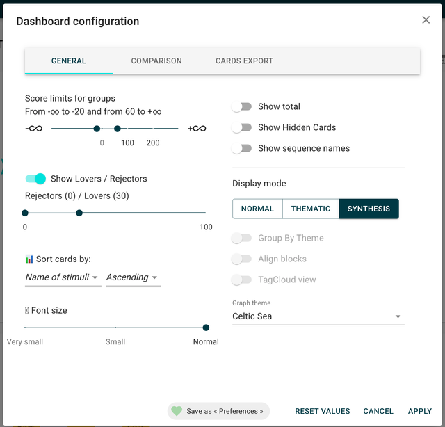 Afficher/masquer la carte TOTAL : Activez ou désactivez l'affichage de la carte TOTAL, qui représente le score moyen de tous les stimuli. Utile pour les comparaisons.