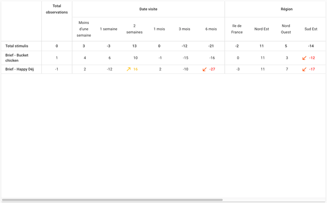- Comparer avec : Comparez un stimulus avec la moyenne (TOTAL) ou un autre stimulus spécifique pour mettre en évidence les différences.