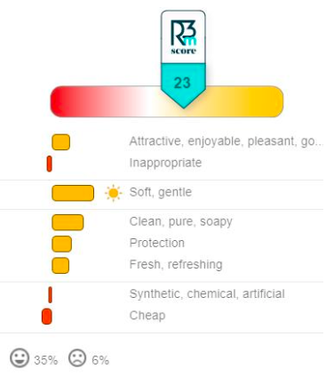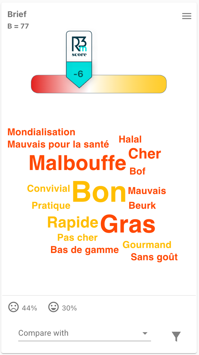 - Carte détaillée : Chaque carte stimulus affiche le score R3M ainsi que des résultats détaillés au niveau des mots.