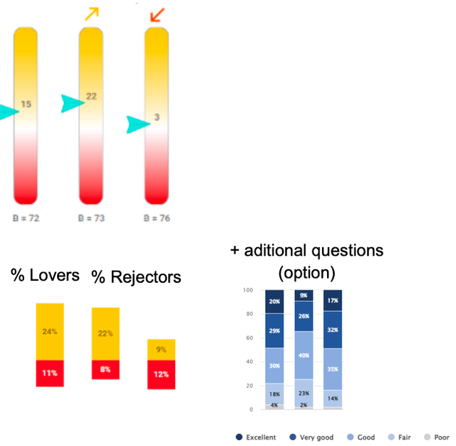 - Questions supplémentaires : Affiche la répartition en pourcentage des filtres et autres questions d'enquête si inclus dans vos données.