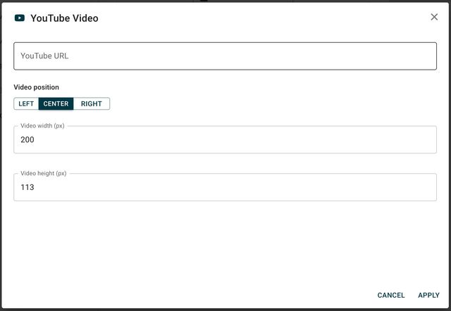 - Les vidéos YouTube sont intégrées via l’URL de la vidéo.