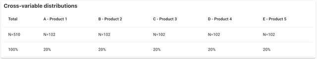 Scénario d’exemple : Vous sélectionnez « Produit » comme variable de croisement. Votre tableau de bord contient des questions de satisfaction, le NPS et des données démographiques. Chaque question affiche désormais :