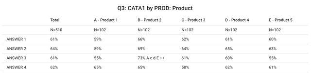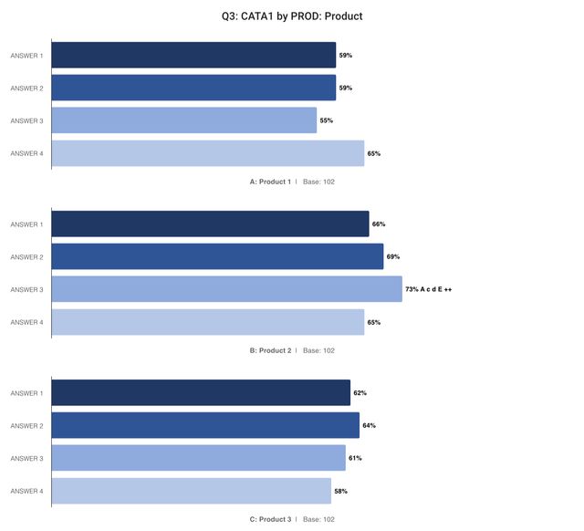 - Des graphiques comparant la manière dont les utilisateurs de chaque produit ont répondu.