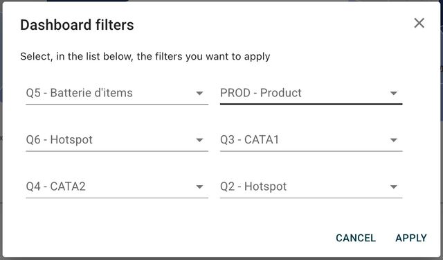 - Les filtres ne modifient pas les données d’enquête sous-jacentes — uniquement ce qui est affiché dans le tableau de bord.