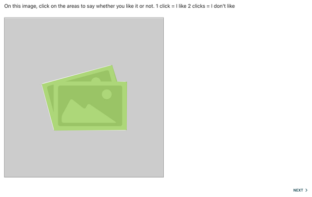 Le type de question Hotspot vous permet de créer des zones cliquables interactives sur des images. Les répondants peuvent cliquer sur différentes zones d'une image pour fournir des retours, ce qui est idéal pour les études d'évaluation visuelle, les tests d'interface ou tout scénario où le retour spatial est précieux.