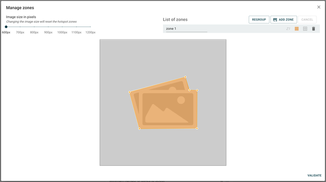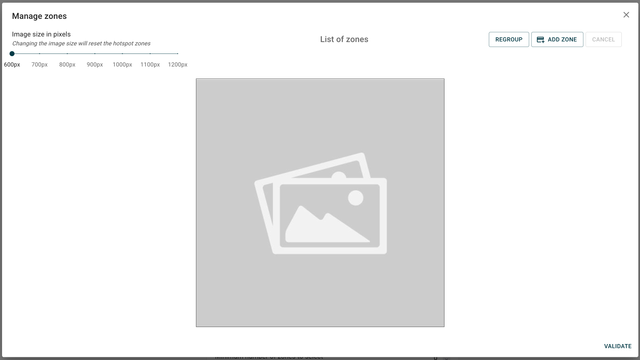 Une fois votre image ajoutée, vous pouvez accéder au menu de gestion des zones en cliquant sur "Gérer les zones".