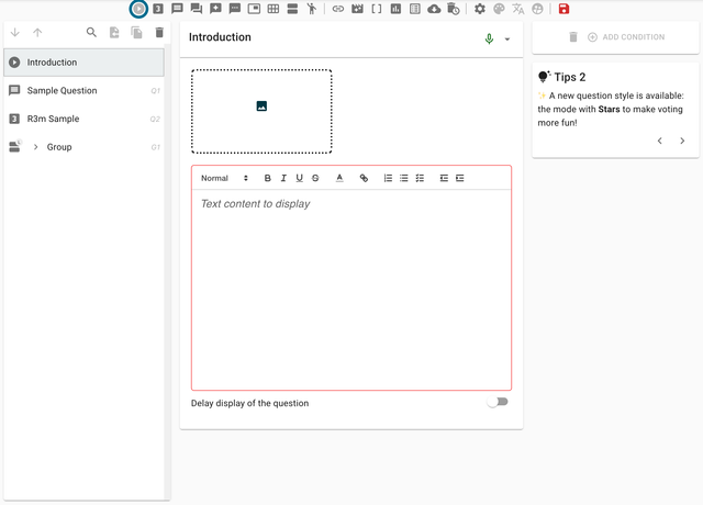Le type de question Introduction est utilisé pour fournir des messages de bienvenue, des instructions ou du contenu introductif aux répondants du questionnaire. Ce type de question ne collecte pas de données mais sert de bloc d'information pour guider les répondants à travers votre questionnaire.