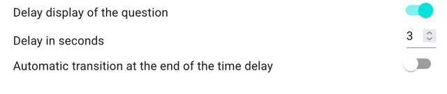 - Paramètre de délai - Ajoutez un délai à la question, contrôlant combien de temps les répondants doivent attendre avant de pouvoir continuer