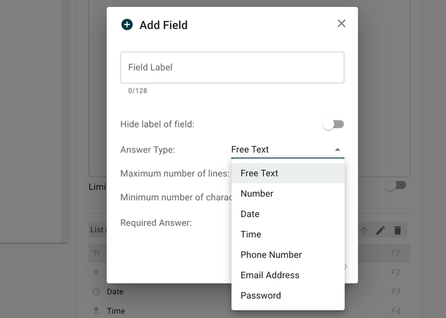 Les questions ouvertes prennent en charge plusieurs types de champs, chacun avec des caractéristiques de validation et de saisie spécifiques :