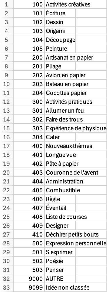 | Code | Thème/Idée | Occurrences |